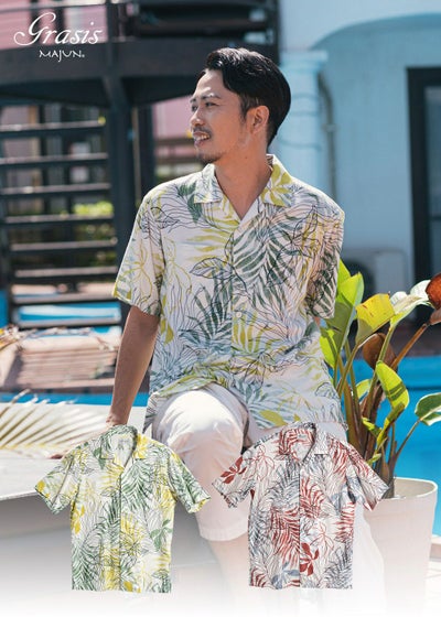 数年ぶりに開襟シャツのリーフグラデーションを購入しました。 ワインカラーを購入しましたが気に入らずグリーンを無料交換してもらいました。 生地が薄くて気に入ってます。 欲を言えば夏らし色であるブルーがあればいいかなと。